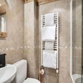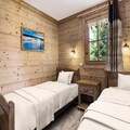 Spanning three levels, the chalet boasts four beautifully appointed bedrooms, each with its own en-suite bathroom for ultimate privacy and convenience. The lower level features two twin bedrooms, one with a shower and the other with a bathtub, alongside a relaxation area complete with a sauna and shower. On the ground floor, two double bedrooms with en-suite facilities ensure restful nights. The upper level is the heart of the home, with a semi-open-plan kitchen, a cozy dining area, and a spacious living room centered around a crackling fireplace. Step out onto the expansive terrace to soak in the crisp alpine air and stunning views. Additional amenities include a garage, two outdoor parking spaces, a boot dryer, WiFi, and a washing machine.