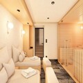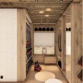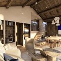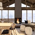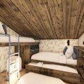 Spanning 220m², the chalet comfortably accommodates 8 adults and 5 children across four beautifully appointed levels. The master bedroom and additional double bedrooms feature en suite bathrooms for ultimate privacy, while the family room on the top floor offers a cozy sanctuary for children and parents alike. The heart of the home is the open-plan living area, where a crackling fireplace invites you to unwind after a day on the slopes. A fully equipped kitchen and utility room ensure convenience, while the spa on the lower level, complete with a sauna and relaxation area, promises rejuvenation. Step outside to the terrace and immerse yourself in the private jacuzzi, surrounded by panoramic alpine views.