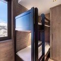 Spanning an impressive 134m², the apartment is designed to accommodate up to 6 adults and 4 children, making it ideal for families or groups. The layout includes a spacious living room with a cozy lounge area, a dining room, and a fully equipped open-plan kitchen. The sleeping arrangements are thoughtfully designed, featuring two double bedrooms with en-suite showers, a family bedroom with a double bed and bunk beds for children, and an additional alcove with bunk beds. Modern amenities such as a laundry room, Wi-Fi, and a ski locker ensure convenience, while the large balcony invites you to relax and soak in the alpine beauty.