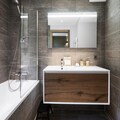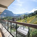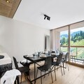 The Phoenix 801 apartment spans an impressive 96m², blending contemporary design with cozy alpine touches. Accommodating up to six adults and two children, the layout is thoughtfully designed for comfort and privacy. The open-plan living and dining area, complete with a fully equipped kitchen, is perfect for gathering after a day of adventure. Three elegant double bedrooms, two with en-suite facilities, ensure restful nights, while the alcove with bunk beds delights younger guests. A south/east-facing balcony stretches the length of the apartment, offering breathtaking views of the surrounding peaks.