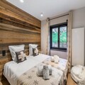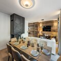 This brand-new 4-bedroom apartment, spanning 117m², is designed to accommodate up to 8 adults in unparalleled comfort. The ground floor features a fully equipped kitchen, a dining area perfect for shared meals, and a cozy living room with a fireplace that opens onto a balcony. A double bedroom with an en-suite shower room and a separate toilet complete this level. Upstairs, you’ll find three additional bedrooms, each with its own en-suite shower room, ensuring privacy and convenience for all guests. Modern amenities such as Wi-Fi, a ski locker, and a covered parking space add to the ease of your stay.