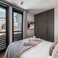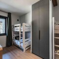 Inside, the apartment exudes modern elegance with its carefully curated design and premium materials like wood and stone. The ground floor features an open-plan kitchen, a welcoming living room with a dining area, and a cozy lounge that opens onto the terrace. A double bedroom with an en suite bathroom and a laundry room add to the convenience. On the lower level, you’ll find a luxurious master bedroom with an en suite bathroom, a twin bedroom, a separate shower room, and a charming children’s bedroom with bunk beds that sleep four. Every detail has been thoughtfully designed to provide maximum comfort for families and groups.