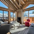 High above the picturesque Courchevel village, this luxurious chalet offers a serene retreat with breathtaking views of the surrounding glacier. Designed to combine alpine charm with modern elegance, the property is a haven for those seeking tranquility amidst the French Alps. The expansive bay windows in the living room flood the space with natural light, framing panoramic vistas that will leave you in awe. Whether you're relaxing by the wood-burning stove or enjoying the fresh mountain air, every moment here feels like a dream.