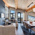 Spanning approximately 186m², the apartment is designed to accommodate up to 8 adults across four elegant bedrooms, each featuring en-suite bathrooms, televisions, and private balconies. The open-plan living area on the upper level is a haven of relaxation, complete with a cozy fireplace, a dining area, and a fully equipped kitchen that invites shared meals and warm conversations. Modern amenities such as a ski room, covered parking, and access to the residence’s spa and swimming pool ensure a seamless and indulgent stay.