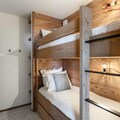 Spanning approximately 126m², the apartment is designed to host up to six adults and two children in absolute comfort. The spacious living room, complete with a cozy fireplace and a balcony, is perfect for unwinding after a day on the slopes. The open-plan kitchen is fully equipped, inviting you to prepare hearty meals to share with loved ones. Each of the three double bedrooms boasts en-suite facilities, balconies, and modern amenities, while the sleeping alcove with bunk beds is ideal for younger guests. The ski room and covered parking add to the convenience of your stay.