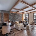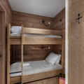 Spanning 86 square meters, this elegant apartment is designed for up to four adults and two children, making it perfect for families or small groups. The open-plan living area, complete with a cozy fireplace and a dining space, is the ideal setting for warm evenings after a day on the slopes. The fully equipped kitchen invites culinary creativity, while the two en-suite double bedrooms and a charming sleeping alcove with bunk beds ensure restful nights for all. Modern amenities like televisions in every bedroom, a ski room, and covered parking enhance your comfort.