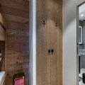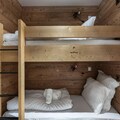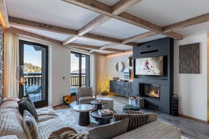 Spanning 86 square meters, this elegant apartment is designed to accommodate up to four adults and two children. The warm and inviting living room, complete with a fireplace and dining area, is the perfect space to unwind after a day on the slopes. The open-plan kitchen is fully equipped for preparing gourmet meals, while the two en-suite double bedrooms and a cozy sleeping alcove with bunk beds ensure restful nights for all. Modern amenities, including televisions in every bedroom, a ski room, and covered parking, add to the convenience of your stay.