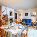 The apartment features a fully equipped open kitchen, making it easy to prepare and enjoy meals during your stay. Additional amenities include a ski locker for secure storage, an outdoor parking space within the residence courtyard, and essential heating facilities for your comfort. With its ideal location and modern conveniences, this retreat guarantees a memorable mountain getaway.