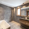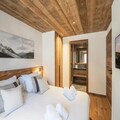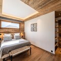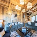 This exquisite 4-level chalet offers 270m² of luxury, accommodating up to 10 guests. It features 5 en-suite bedrooms, including a family suite with a master bedroom and children's bedroom with bunk beds. The master suite offers a balcony and a lavish bathroom with both a bathtub and shower. Other amenities include a ski room with a boot dryer, a safe, and the property is pet-friendly (for a fee).