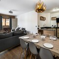 Located just 100 meters from the snow front, this apartment offers easy access to ski lifts and the vibrant village atmosphere of Courchevel Moriond. The surrounding area boasts a variety of shops, restaurants, and cafes, as well as a range of activities for both skiers and non-skiers. The Ariondaz gondola is only a short walk away, providing direct access to the expansive 3 Valleys ski area.