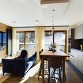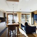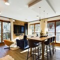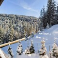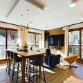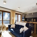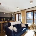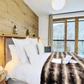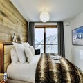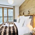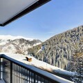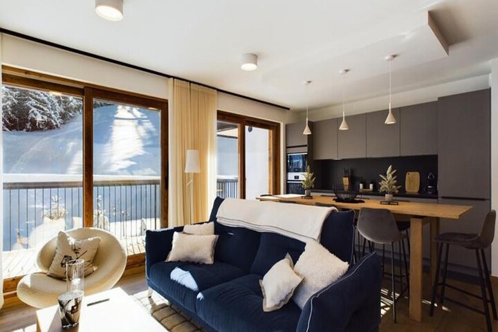 Inside, the apartment offers a large living room of 32 m², featuring a comfortable seating area with an ethanol fireplace. The spacious dining area is perfect for family meals, while the modern kitchen comes fully equipped for all your culinary needs. Additional amenities include bed and bathroom linen, as well as daily cleaning services, ensuring a hassle-free stay in the heart of Courchevel Moriond.