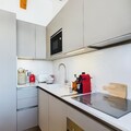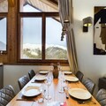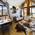 Inside, the penthouse features a cozy living room with a sofa and armchairs, a fully equipped open kitchen, and a dining area. The spacious balcony provides an exceptional view of the slopes, perfect for unwinding after a day of outdoor adventure. Additional amenities include bed and bathroom linens, as well as daily cleaning services to ensure a carefree stay.