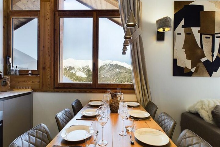 The residence benefits from ski-in/ski-out access, with the “Petit Moriond” gondola just 100 meters away, making it easy to hit the slopes. The property is also located near the heart of Courchevel Moriond, where you can explore local shops and cafes. The stunning view of the slopes from the balcony is the perfect backdrop for a relaxing day after skiing, offering families both convenience and a peaceful retreat.