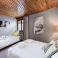 This spacious apartment, located in the heart of Courchevel 1850, accommodates up to 7 guests with 3 beautifully appointed bedrooms. Two double bedrooms are en-suite, each with a bathroom featuring a bath and toilet, while the third bedroom offers a triple configuration with a 90cm bed and a twinable double bed, also with an en-suite bathroom. Additional amenities include a separate toilet, Wi-Fi, and linens provided with beds made upon arrival, ensuring a comfortable stay.