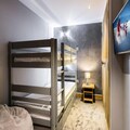 This 80m² apartment is perfect for up to 6 people, offering three bedrooms. It includes a double bedroom, a twin (or double) room, and a bedroom with bunk beds. The apartment also features a bathroom with toilet, a shower room, and a separate toilet for convenience. The spacious living/dining room provides a comfortable area to relax, and pets are not allowed to maintain a tranquil environment. Two covered parking spaces and a ski locker are also available for guests.