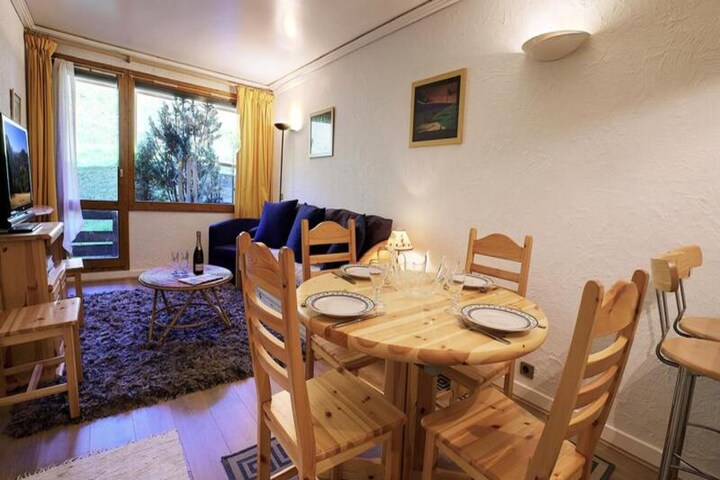 This 40m² apartment is perfect for 2 adults and 2 children, featuring 1 bedroom and a mountain corner with bunk beds. The cozy living room includes a dining area and a balcony that faces south, offering beautiful views of the slopes. The double bedroom provides comfort for a restful night, while the bathroom and separate toilet ensure convenience for all guests. A ski locker and private underground parking with a designated space are available. Please note that pets are not allowed.