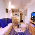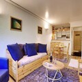 The apartment features a semi-open, fully equipped kitchen, making it easy to prepare meals during your stay. The bathroom is well-appointed, and the apartment also includes a ski locker for your gear. Linen (sheets and towels) is provided, and beds are made on arrival. The end-of-stay cleaning service is included, except for the kitchen area, ensuring a hassle-free experience.