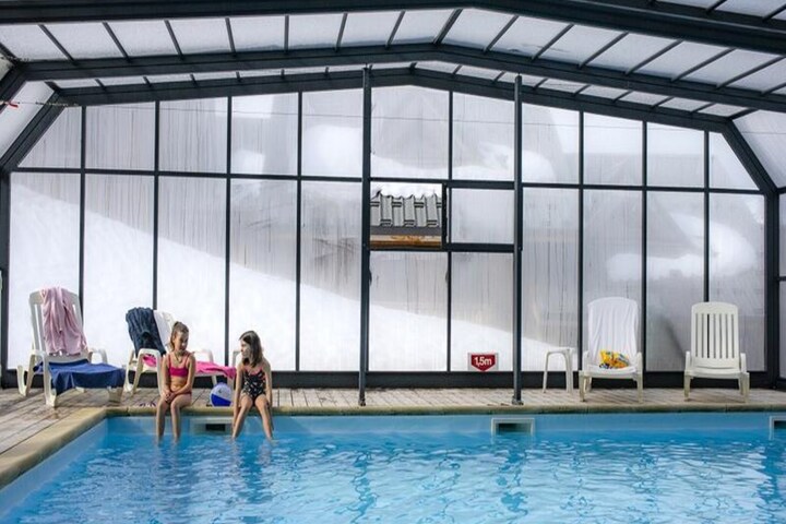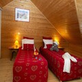 The residence features a collection of cozy wooden chalets and apartments, thoughtfully designed for comfort and convenience. Your duplex accommodation includes a spacious living room with a sofa bed, a fully equipped kitchen, and three bedrooms—one with a double bed and two with twin beds, one of which is upstairs. With a shower room, a bathroom, and a separate WC, it’s ideal for families or groups. After a day on the slopes, unwind in the heated indoor swimming pool or indulge in the sauna for ultimate relaxation. Modern amenities like television and optional WiFi ensure a seamless stay, while the rustic charm of the wooden interiors creates a warm and inviting atmosphere.