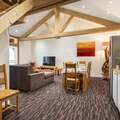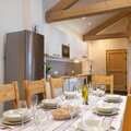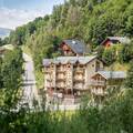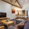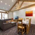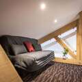 This apartment is on the 3rd floor (elevator available), the apartment itself is spread over 2 floors and offers an exceptional view of the Nancroix valley, the mountains, spruce forests and the Massif de la Vanoise. From the large living area with open kitchen, a steep staircase leads to the sleeping gallery with sofa bed, a bedroom with private bathroom is on the level of the living room, three bedrooms, each with private bathroom, are on the upper floor of the apartment.