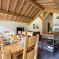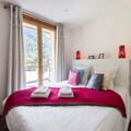 The independent chalet has 2 floors, from the living room you have access to the balcony with a magnificent view of the Nancroix valley, the mountains, spruce forests and the Massif de la Vanoise. Each of the 4 bedrooms has a private bathroom, three of which are on the upper floor.