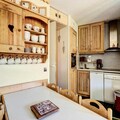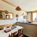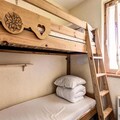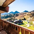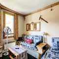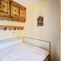 This cozy 35m² apartment, ideal for families or friends, is located on the 5th floor of a quiet residence in Belle Plagne. The apartment features a living room with a sofa bed for two, a separate cabin area with bunk beds, and a bedroom with a double bed. The apartment is not pet-friendly and offers direct access to the slopes, making it a perfect choice for ski enthusiasts. Guests can enjoy a balcony with stunning mountain views, facing southwest.