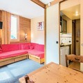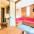 This cozy studio apartment, located in a wooden and stone chalet, offers a comfortable stay with three sofa beds and a cabin area with bunk beds. Pets are allowed with an additional charge, and parking is available in a covered space during the summer months. The apartment features a south-facing balcony with stunning mountain views, ideal for enjoying the fresh air. Housekeeping is available at an extra cost, and Wi-Fi is provided for a supplementary fee.