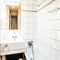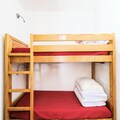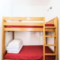 Inside, the apartment features a semi-open kitchen area and a well-maintained bathroom with a bathtub-shower combination. A separate toilet is available for convenience. The cabin area with bunk beds is perfect for kids or additional guests. Bed linen, towels, and end-of-stay cleaning are available for an extra charge, ensuring a comfortable and convenient stay.