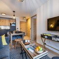 Each apartment is fully furnished with a mix of modern and mountain-inspired design, ensuring a comfortable and stylish stay. Guests can unwind in cozy communal areas, thoughtfully decorated with a quirky touch, and enjoy entertainment and music for a friendly, social atmosphere.