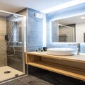 Living room(double sofa bed(160 x 190 cm), TV(flatscreen), seating area), open kitchen(hob(ceramic), electric kettle, toaster, coffee machine, microwave, dishwasher, fridge, dishes and cutlery), Kitchenette(electric kettle, toaster, espresso machine, microwave, fridge, dishes and cutlery), bedroom(double bed(160 x 200 cm)), bedroom(single bed(80 x 200 cm), single bed(80 x 200 cm)), Cabin(bunk bed(80 x 200 cm)), bathroom(shower, toilet), bathroom(shower, toilet), balcony or terrace