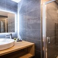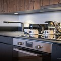 Living room(double sofa bed(160 x 190 cm), TV(flatscreen), seating area), open kitchen(hob(ceramic), electric kettle, toaster, coffee machine, microwave, dishwasher, fridge, dishes and cutlery), Kitchenette(electric kettle, toaster, espresso machine, microwave, fridge, dishes and cutlery), bedroom(double bed(160 x 200 cm)), bedroom(single bed(80 x 200 cm), single bed(80 x 200 cm)), bedroom(double bed(200 x 160 cm)), bathroom(shower), bathroom(shower), toilet(toilet), toilet(toilet), balcony or terrace
