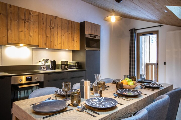 In addition to the excellent location, the apartment features a fully equipped kitchen and designer furnishings that blend contemporary comfort with a cozy mountain feel. The property offers premium services including gourmet breakfasts, snacks, and a convivial dining bar, along with lively entertainment to enhance your stay.
