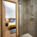 Living room(double sofa bed, TV(flatscreen), seating area), open kitchen(hob(ceramic), electric kettle, toaster, coffee machine, oven, microwave, dishwasher, dishes and cutlery), Bedroom with bathroom(double bed(180 x 200 cm), shower, toilet), Bedroom with bathroom(single bed(80 x 200 cm), single bed(80 x 200 cm)), sleeping niche(bunk bed(80 x 190 cm)), bathroom(shower), toilet(toilet), balcony