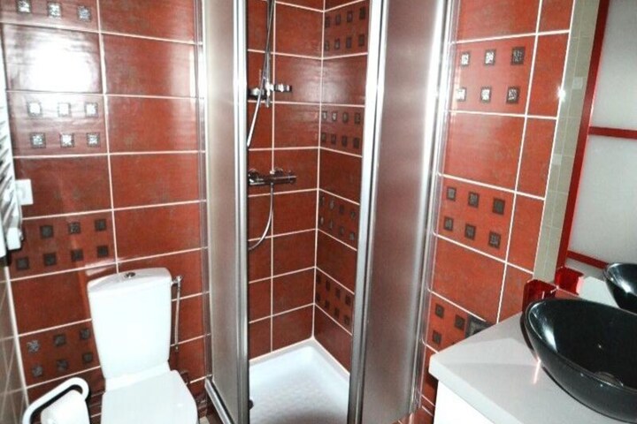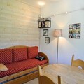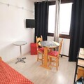 High above the bustling heart of Plagne Centre, this charming studio apartment offers an idyllic alpine retreat with direct access to the slopes. Imagine stepping out onto your private south-facing balcony, where the breathtaking mountain views and the lively hum of skiers create the perfect backdrop for your holiday. Whether you're here to carve through fresh powder or simply soak in the serene alpine atmosphere, this fifth-floor haven provides a cozy and convenient base for your adventures. \n\nInside, the 22 m² studio is thoughtfully designed to maximize comfort and functionality. The living area features two trundle beds and a dining space, perfect for unwinding after a day on the slopes. A separate sleeping alcove with two single bunk beds ensures restful nights for up to four guests. The compact kitchen is equipped with two electric hobs, a refrigerator, a combi oven, and a dishwasher, making it easy to prepare hearty meals. The bathroom includes a shower and toilet, while the bright interiors and ample natural light enhance the welcoming ambiance.\n\nThe Residence Le France is perfectly situated at the foot of the slopes, with a direct connection to shops and amenities via a convenient gallery. A dedicated ski locker on the ground floor ensures hassle-free storage for your gear. Beyond skiing, the area offers a wealth of activities, from snowshoeing and sledding in winter to hiking and mountain biking in summer. \n\nWhether you're a family, a couple, or a small group of friends, this studio promises an unforgettable alpine getaway. With its unbeatable location, stunning views, and cozy comforts, your mountain escape awaits.