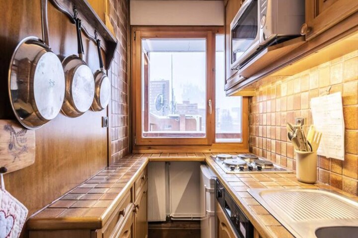 High above the bustling heart of La Plagne Centre, this bright and inviting apartment offers a front-row seat to the slopes and a panoramic view of the snowy alpine landscape. Imagine waking up to the sun illuminating the peaks, stepping onto your spacious south-facing balcony, and planning your day of adventure in the Paradiski domain. With direct access to the resort’s shopping mall and ski lifts, this property is a haven for those seeking convenience and comfort in the French Alps. \n\nInside, the apartment is thoughtfully designed to accommodate up to six guests. The divisible living room creates flexible spaces for dining and relaxation, while the cozy bedroom features bunk beds perfect for families or groups of friends. The kitchen is equipped with modern amenities, including a combination oven, dishwasher, and electric hobs, making it easy to prepare hearty meals after a day on the slopes. The bathroom with a bathtub and separate toilet ensures practicality, while the large corner balcony invites you to soak in the alpine atmosphere from both the living room and bedroom. \n\nThe residence, La Meije, is ideally situated at the foot of the slopes, offering ski-in/ski-out access and proximity to all the essentials. Whether you need ski passes, equipment rentals, or a quick bite at the shopping mall, everything is just steps away. In summer, the area transforms into a paradise for hikers and mountain bikers, with trails winding through breathtaking scenery. \n\nPerfect for both winter sports enthusiasts and summer adventurers, this apartment combines the charm of alpine living with the convenience of a central location. Create unforgettable memories in La Plagne Centre, where the mountains are your playground and relaxation is always within reach.