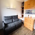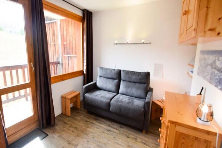 High above the serene slopes of Plagne Villages, this charming studio apartment offers a cozy retreat for ski enthusiasts and mountain lovers alike. With its south-facing balcony overlooking pristine pistes, you’ll wake up to breathtaking views and the promise of adventure just steps away. The residence’s quiet atmosphere and direct access to the slopes make it an ideal base for exploring the world-renowned Paradiski domain, whether you’re carving through fresh powder or enjoying sunny alpine trails. \n\nCompact yet thoughtfully designed, this divisible studio comfortably accommodates up to five guests. The living area features a rapido double sofa bed and a dining space, while the sliding partition reveals a separate sleeping area with bunk beds and a single bed. A well-equipped kitchen includes electric hobs, a refrigerator, microwave, and dishwasher, ensuring all the essentials for preparing hearty meals after a day on the slopes. Modern conveniences like WiFi and a ski locker on the ground floor add to the ease of your stay. \n\nLocated just 700 meters from local shops, accessible via a free shuttle bus, the residence offers both tranquility and convenience. Plagne Villages is seamlessly connected to Plagne Centre by a free gondola, making it easy to explore the wider area. In winter, enjoy unparalleled skiing, while summer transforms the region into a haven for hiking, biking, and breathtaking nature excursions. \n\nWhether you’re seeking thrilling descents or peaceful alpine vistas, this studio invites you to experience the magic of the French Alps in comfort and style.