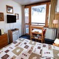 High above the snowy peaks of Plagne Centre, this charming studio offers a cozy retreat for two with breathtaking views of the slopes right from your south-facing balcony. Imagine waking up to the serene beauty of the Alps, stepping out onto your balcony to soak in the crisp mountain air, and starting your day with the slopes just steps away from your door. Whether you're here for thrilling ski adventures or a tranquil alpine escape, this residence delivers the perfect balance of comfort and convenience. \n\nInside, the studio is thoughtfully designed to maximize space and functionality. The living area features a comfortable double bed, a dining nook, and a television for relaxing evenings after a day on the slopes. The compact kitchen is equipped with all the essentials, including electric burners, a dishwasher, a mini-oven, a microwave, and a refrigerator, making it easy to prepare meals. The bathroom includes a shower and toilet, and the studio is carpeted throughout, except for the tiled entrance and bathroom areas. With its warm and inviting ambiance, this studio is ideal for couples seeking a peaceful getaway. \n\nLocated at the foot of the slopes, the residence is connected to nearby shops via a convenient gallery, ensuring you have everything you need within easy reach. A ski locker is available for your equipment, and outdoor parking is situated just behind the building. The vibrant Plagne Centre offers a variety of activities, from skiing and snowboarding to après-ski dining and entertainment, making it a hub of alpine excitement. \n\nWhether you're here to carve through pristine snow or simply unwind amidst stunning mountain scenery, this studio promises an unforgettable stay in the heart of the Paradiski domain.