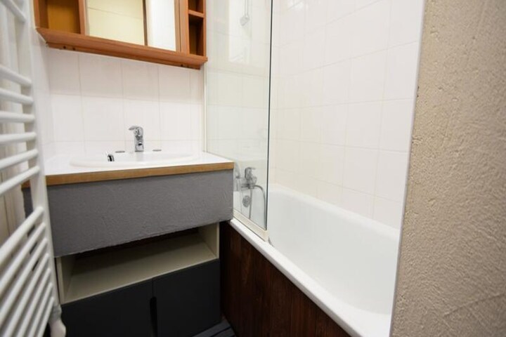 Inside, the 26m² apartment is thoughtfully designed for comfort and functionality. The open-plan kitchen, equipped with modern amenities such as ceramic hobs, a dishwasher, and a combination oven, makes meal preparation a breeze. The living room features a double sofa bed and a TV with TNT and DVD, creating a cozy space to relax. The separate bedroom offers two trundle beds, ideal for families or small groups. The bathroom includes a bathtub, and there is a separate toilet for added privacy. Practical touches like a ski locker and free outdoor parking enhance your stay, while the non-smoking and pet-free policy ensures a clean and allergy-friendly environment.