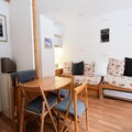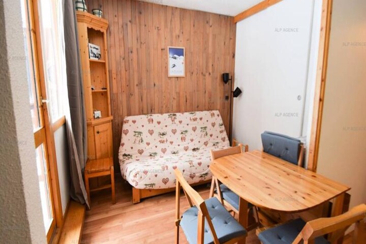 Amidst the serene charm of Plagne Villages, this delightful apartment offers a cozy retreat for up to five guests. Surrounded by the tranquil beauty of a lush forest and located just 50 meters from local shops, this property combines convenience with the allure of nature. Whether you're seeking a peaceful escape or an action-packed adventure, this is the perfect base for your alpine getaway. \n\nThe apartment spans 28m² and features a clever layout with a divisible living area, allowing for flexible sleeping arrangements. It includes a comfortable double sofa bed in the living room, a single bed, and a trundle bed in the divided space. The separate kitchen is fully equipped with modern amenities such as ceramic hobs, a refrigerator, oven, microwave, dishwasher, and a Tassimo coffee maker, making it easy to prepare delicious meals. The bathroom includes a bathtub and a washing machine, while the separate WC adds extra convenience. Two south/west-facing balconies provide stunning views of the surrounding forest, perfect for unwinding after a day on the slopes. \n\nSituated at the foot of the ski slopes, the residence offers unparalleled access to winter sports. A ski locker is available for your equipment, and the free cable bus connects you effortlessly to the nearby Plagne Centre. In summer, the area transforms into a haven for hikers and nature enthusiasts, with trails weaving through the picturesque alpine landscape. \n\nWhether you're here to carve through fresh powder or explore the tranquil beauty of the mountains, this apartment in Les Soldanelles Residence promises a memorable stay in the heart of the French Alps.