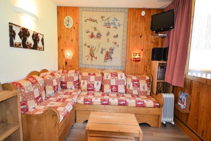 In the heart of Plagne Villages, where the serene forest meets the excitement of the slopes, this charming 2-room apartment offers a cozy retreat for families and small groups. Imagine stepping out onto your ground-floor balcony to enjoy views of the surrounding alpine scenery, with the slopes and forest creating a picturesque backdrop. This inviting space is perfect for unwinding after a day of mountain adventures, whether you're exploring the snow-covered trails in winter or the lush greenery in summer. \n\nThe apartment is thoughtfully designed to accommodate up to 4-5 guests, making it ideal for two adults and 2-3 children. The open-plan kitchen and living area are equipped with modern conveniences, including a multi-function oven, refrigerator, and dishwasher, ensuring a comfortable stay. The living room features a dining area and two pull-out beds, while the separate bedroom offers bunk beds and a single bed, providing flexible sleeping arrangements. A bathroom with a bathtub and a separate WC add to the convenience, and the apartment is smoke-free for a fresh and healthy environment.\n\nLocated just 50 meters from the local shops and with level access to the parking lot, the residence combines practicality with charm. While there is no direct slope access, the ski locker on the ground floor ensures your gear is always ready for your next adventure. Whether you're here to ski, hike, or simply relax, the proximity to both nature and amenities makes this apartment a perfect base for your alpine getaway.\n\nWith its blend of comfort, convenience, and stunning surroundings, this property invites you to create unforgettable memories in the heart of the French Alps. Whether you're savoring a quiet evening on the balcony or exploring the vibrant mountain village, every moment here is an opportunity to reconnect with nature and loved ones.