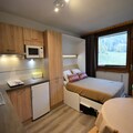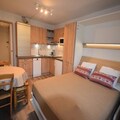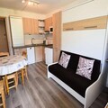 Step inside and discover a cleverly designed 22m² space that combines comfort and functionality. The studio features a modern kitchen equipped with induction hobs, a multifunction oven, refrigerator, and dishwasher, making it easy to prepare hearty meals after a day on the slopes. The living area boasts a dining space and a fold-down double wall bed, while the cabin area offers snug bunk beds for two. A contemporary bathroom with a shower and WC completes the layout, ensuring a comfortable stay for up to four guests. Please note, the property is non-smoking and pet-free, ensuring a pristine environment for all visitors.