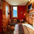 Bask in the serene beauty of the French Alps at this charming studio in the Les Gentianes Residence, located in the picturesque Plagne Villages. With its south-west facing balcony offering stunning views of the snow-covered slopes, this cozy retreat is the perfect escape for a couple or a small group of up to four people. Whether you're here to ski, relax, or simply enjoy the mountain air, this studio provides an inviting base for your alpine adventures. \n\nThe 22m² studio is thoughtfully designed to maximize comfort and functionality. The living area features two sofa beds and two trundle beds, ensuring flexible sleeping arrangements for guests. A well-equipped kitchenette includes ceramic hobs, an oven, a microwave, and a refrigerator, making it easy to prepare meals after a day on the slopes. The bathroom is fitted with a shower and toilet, and additional amenities such as a washing machine and a ski locker on the ground floor add to the convenience. \n\nSituated at the foot of the slopes, this residence offers unbeatable ski-in/ski-out access, allowing you to hit the pistes as soon as you step outside. For those looking to explore the area, Plagne Villages is connected to Plagne Centre by the TELEBUS, a pedestrian or ski cabin that makes getting around effortless. Shops, restaurants, and après-ski activities are just 500 meters away and easily accessible by shuttle. \n\nWhether you're drawn by the thrill of skiing, the charm of the alpine village, or the tranquility of the mountains, this studio offers a warm and welcoming haven. Create unforgettable memories in the heart of the French Alps, where every moment is framed by breathtaking landscapes and the promise of adventure.