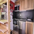 This thoughtfully designed 24m² apartment comfortably accommodates up to four guests, making it ideal for couples or small families. The private cabin features a cozy double bed, while a separate sleeping area with bunk beds adds a playful touch for children or friends. The kitchenette is fully equipped with induction hobs, a microwave, a dishwasher, and a refrigerator, allowing you to prepare hearty meals to enjoy together. A modern bathroom with a shower and a separate toilet ensures convenience, while the living area with a television creates a welcoming space to relax.