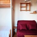 Located on the 4th level of the Les Michailles residence, this 20m² studio is thoughtfully designed to accommodate up to 4 guests. The living area features a comfortable double sofa bed, while the mezzanine offers two single mattresses on a double bed base. A cozy sleeping alcove with a single bed adds flexibility, making it a great choice for families or small groups. The kitchen is fully equipped with electric stovetops, a mini oven, a dishwasher, and a refrigerator, ensuring you can prepare hearty meals after a day of adventure. A bathroom with a bathtub and a separate toilet add to the convenience, while the north-facing balcony invites you to relax and soak in the stunning alpine views.