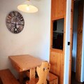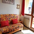 This functional 20m² studio, located on the second floor of the peaceful Les Michailles residence, comfortably accommodates up to four guests. The living room features a double sofa bed, while a sleeping alcove with bunk beds ensures a restful night's sleep for families or small groups. The kitchenette is equipped with electric hobs, a combination oven/microwave, a dishwasher, and a refrigerator, making it easy to prepare hearty meals after a day of alpine exploration. The southwest-facing balcony invites you to unwind with a warm drink as you take in the stunning mountain vistas. Additional amenities include a television and a dedicated ski locker for your convenience.