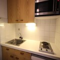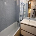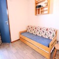 This 23m² studio, situated on the 2nd floor of a residence with an elevator, comfortably accommodates up to four guests. The living room features a set of trundle beds, while a sleeping alcove offers a set of bunk beds, making it a great choice for families or small groups. The east-facing balcony provides stunning views of the slopes and resort, perfect for enjoying your morning coffee or unwinding after a day of activities. The kitchen is equipped with electric hobs, an oven, and a refrigerator, ensuring you have everything needed to prepare meals during your stay. A bathroom with a bathtub and a separate toilet adds to the convenience, while a television and ski locker enhance your comfort.