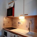 Inside, this 50m² apartment is thoughtfully designed to accommodate up to eight guests, making it perfect for families or groups of friends. The cozy living room features a trundle bed and a single bed, while the two bedrooms offer a variety of sleeping arrangements, including a double bed, bunk beds, and a pull-out bed. The kitchenette is fully equipped with modern appliances, including an induction hob, oven, microwave, dishwasher, and refrigerator, ensuring you have everything you need to prepare hearty meals after a day of alpine adventures. With a bathroom, an additional shower room with a toilet, and a ski locker for added convenience, this apartment is as practical as it is inviting.