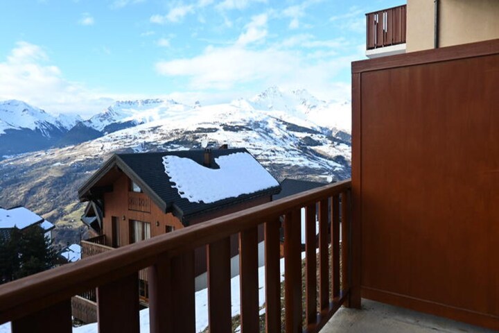 High above the charming Vallandry village, this cozy apartment offers a serene escape with breathtaking views of the valley and surrounding residences. Perfectly situated for both winter and summer adventures, it’s just a short five-minute stroll to the ski school, lifts, and local shops, ensuring convenience without compromising tranquility. Whether you’re here to carve the slopes or explore alpine trails, this residence is your gateway to unforgettable moments in the heart of the French Alps. \n\nStep inside this spacious 52m² ground-floor apartment, thoughtfully designed to accommodate up to seven guests. The southwest-facing balcony invites you to soak in the sunshine while admiring the picturesque landscape. The living area features a comfortable double sofa bed, while upstairs you’ll find a cozy bedroom with a double bed and a sleeping alcove equipped with bunk beds and a single bed—ideal for families or groups of friends. Two bathrooms, each with a bathtub, and two separate toilets ensure ample space and privacy for all. The recently updated flooring adds a fresh touch to the warm, inviting interiors. \n\nThe kitchenette is fully equipped with an electric stovetop, mini oven, dishwasher, and refrigerator, making it easy to prepare meals after a day of adventure. Additional amenities include a television and a ski locker, ensuring a hassle-free stay. Please note that pets are not allowed, and bed linen is included for most stays. \n\nWith its prime location near “La Bergerie de Raphaël” restaurant and daycare facilities, this apartment combines comfort, convenience, and charm. Whether you’re seeking thrilling ski runs, scenic hikes, or peaceful moments on the balcony, this Vallandry retreat promises a memorable alpine getaway.