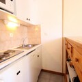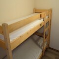 Step inside this 35m² apartment, thoughtfully designed to accommodate up to six guests. The living room features a pull-out sofa bed, while the bedroom offers a comfortable double bed. A separate sleeping area with bunk beds adds flexibility, making it ideal for families or small groups. The kitchenette is fully equipped with an electric hob, oven, microwave, dishwasher, and refrigerator, ensuring you have everything you need to prepare hearty meals after a day of adventure. A bathroom with a bathtub and a separate toilet add to the practicality of this inviting space.