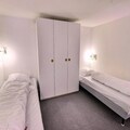 This thoughtfully designed 35m² apartment comfortably accommodates up to five guests, making it ideal for families or small groups. The mezzanine features two single beds, while a double bed in the open sleeping area and a single bed in the living room provide flexible sleeping arrangements. The fully equipped kitchen, complete with a ceramic hob, microwave, dishwasher, and refrigerator, ensures you can prepare hearty meals after a day of exploration. Relax in the cozy living space with a television or unwind in the bathroom's inviting bathtub.