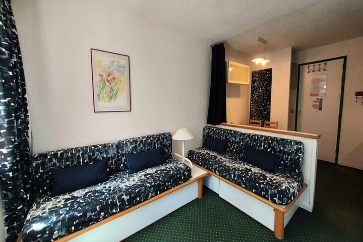 High above the charming alpine village of Montchavin, this cozy 25m² apartment offers a serene retreat for up to four guests. Situated on the third floor of the Le 4ème Dé residence, it provides a warm and inviting space to unwind after a day of mountain adventures. The south-facing balcony presents a stunning view of the resort, where the beauty of the surrounding peaks meets the vibrant energy of the village below. Whether you're here for the thrill of skiing or the tranquility of nature, this apartment is your perfect base.